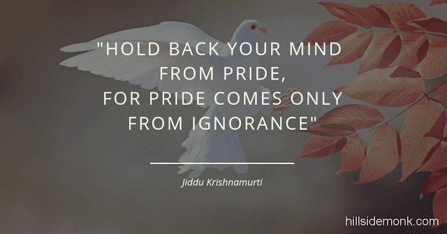 Hold back your mind from pride, for pride comes only from ignorance. The man who does not know thinks that he is great, that he has done this or that great thing; the wise man knows that only God is great, that all good work is done by God alone.~Jiddu Krishnamurthy